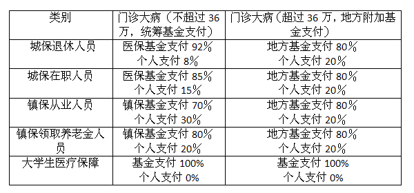 注:上海大病医疗保险仅限于门诊医疗,不包括住院医疗。门诊大病医保实行定点医疗制度,同一种诊疗项目限在一所医院进行,一个参保人同期可享受2种大病诊疗项目。