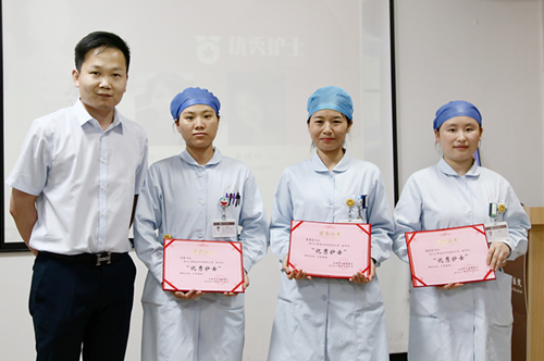 接下来,开始表彰活动,郭院长宣读关于表彰优秀护理人员、服务明星及操作比赛获奖人员的名单。